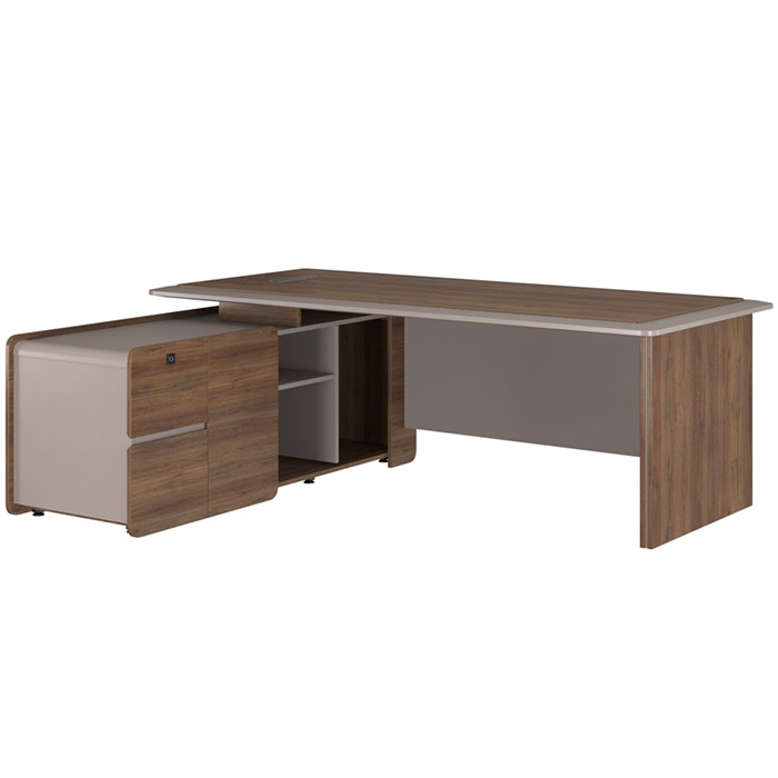 Thiết kế với mặt bàn sơn PU cao cấp ghép hộp, tủ phụ tiện nghi có ngăn kéo sử dụng khóa vân tay bảo mật cao, và tích hợp nắp hộp điện đi dây gọn gàng, phù hợp hoàn hảo để tạo nên không gian làm việc đẳng cấp và chuyên nghiệp |