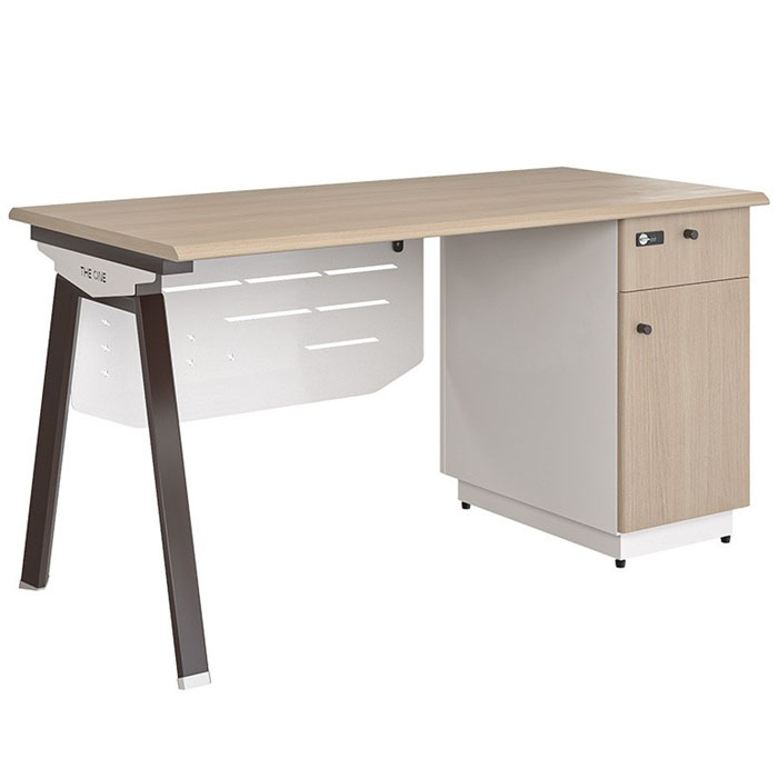 Thiết kế chân thép biên dạng mới sơn tĩnh điện chắc chắn, yếm tôn đồng màu tăng tính thẩm mỹ, mặt bàn chống xước dễ vệ sinh, và tích hợp hộc bàn khóa số riêng tư tiện lợi, phù hợp hoàn hảo với văn phòng hiện đại |