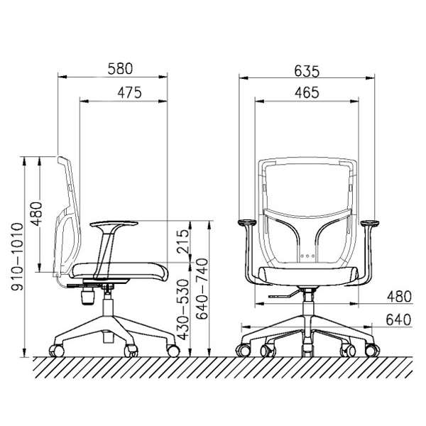 W635 x D580 x H910-1010 mm (Trong đó W: chiều rộng, D: chiều sâu, H: chiều cao) |