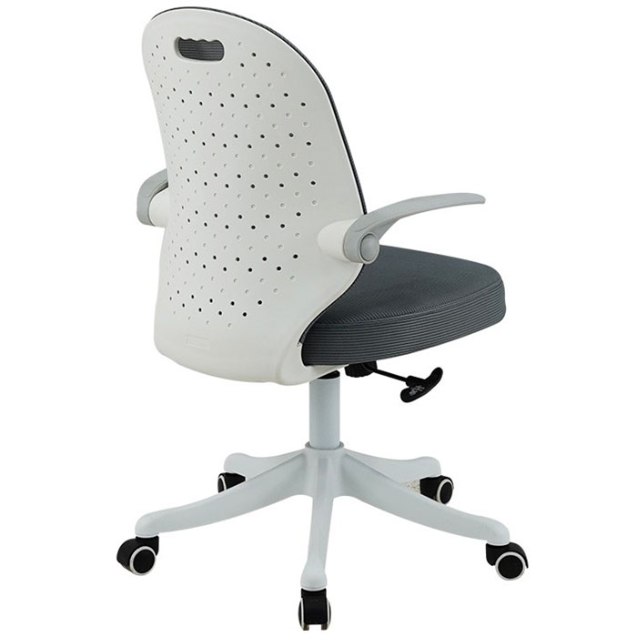 Tựa Nhựa An Toàn và Tinh Tế: Tựa nhựa màu trắng thiết kế ôm lưng, mang lại sự hỗ trợ vừa phải và tạo vẻ ngoài sáng sủa, sạch sẽ cho góc học tập.