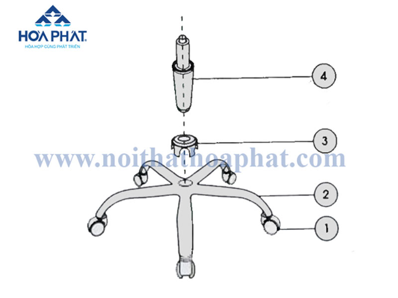Gắn các bánh xe vào các lỗ trên chân sao (ấn mạnh đến khi nghe tiếng "click").